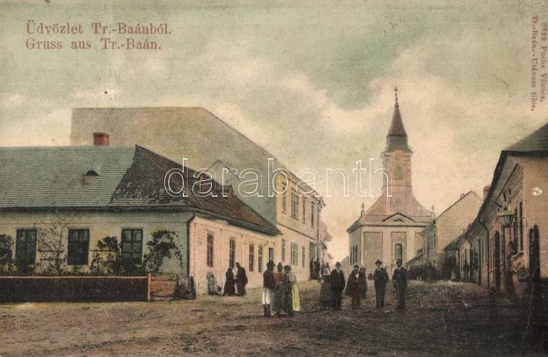 Bán, Trencsénbán, Bánovce nad Bebravou; utcakép, templom. Fuchs Vilmos...