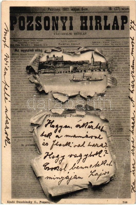 Pozsony, Pressburg, Bratislava; vár, hajó, Pozsonyi Hírlap montázs rek...