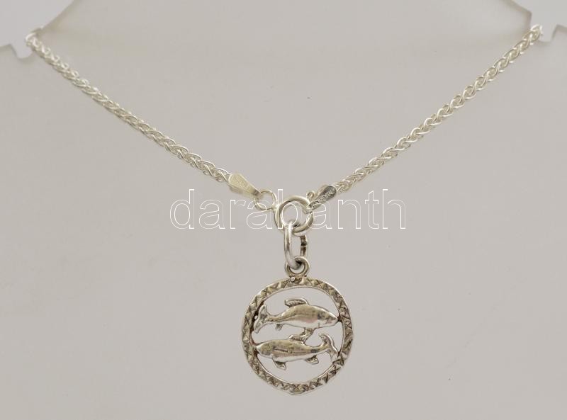 Ezüst(Ag) karkötő, halak függővel, jelzett, h: 18 cm, 2,2x1,5 cm, bru...