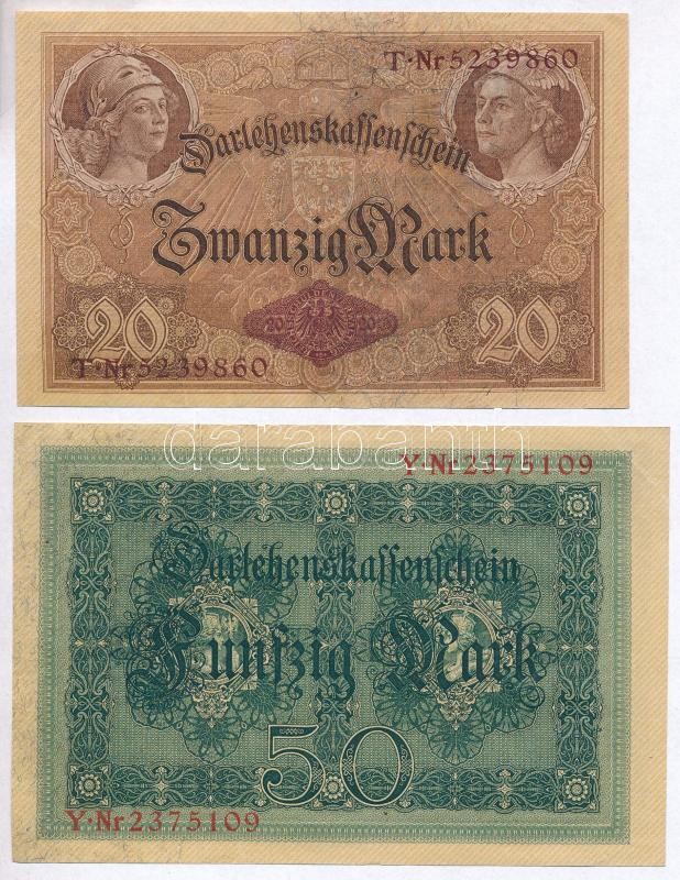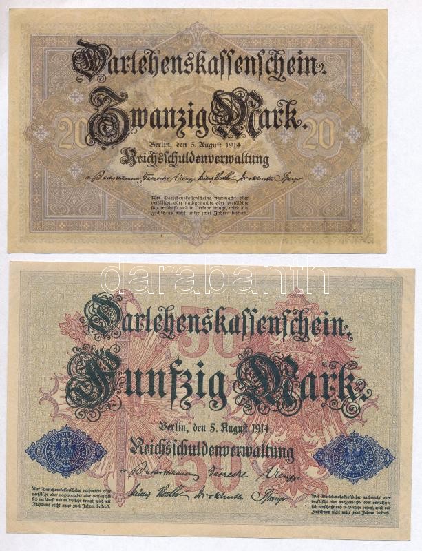 Német Birodalom 1914. 20M + 50M mindkettő 7 jegyű sorszámmal T:III
