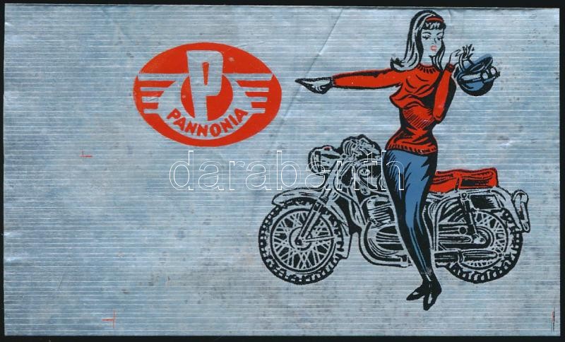 cca 1965 Pannonia motorkerékpár alumínium reklámmatrica
