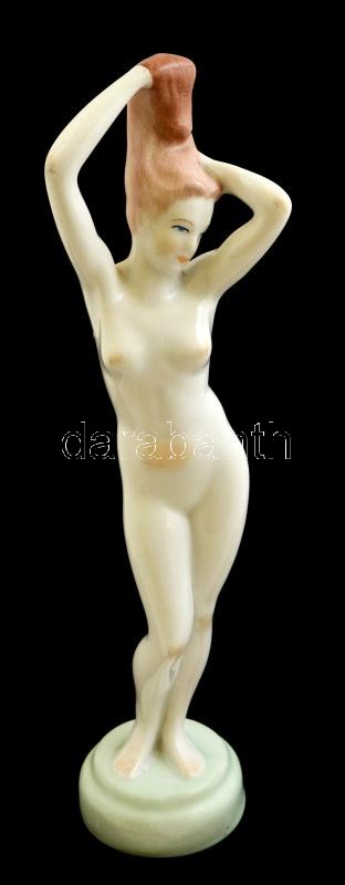 Aquincumi fésülködő porcelán akt, kézzel festett, jelzett, hibátlan, m...