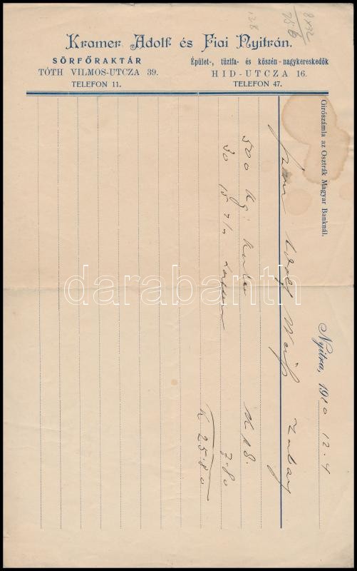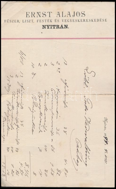 https://www.darabanth.com/en/317-Online-auction/317.0/Other-collectibles/Documents~20/1898-1910-Nyitrai-Felvidek-3-db-kereskedoi-fejleces-szamla-Ernst-Alajos-fuszer-liszt-stb-~II1745342