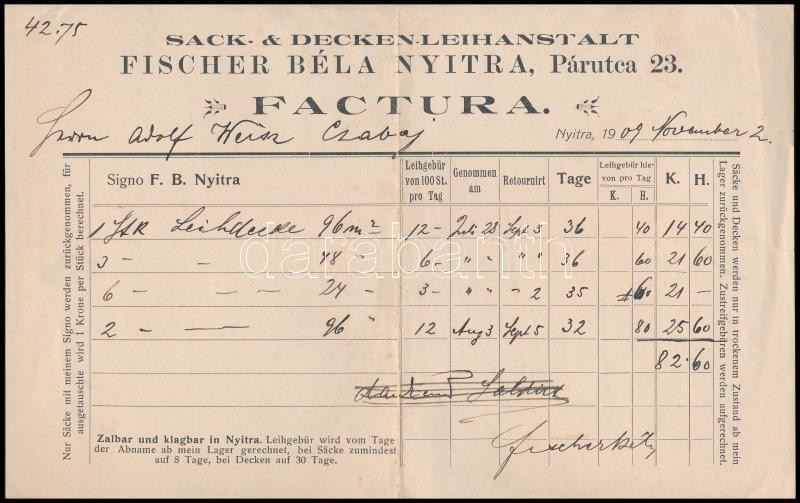 1898-1910 Nyitrai (Felvidék), 3 db kereskedői fejléces számla (Ernst A...