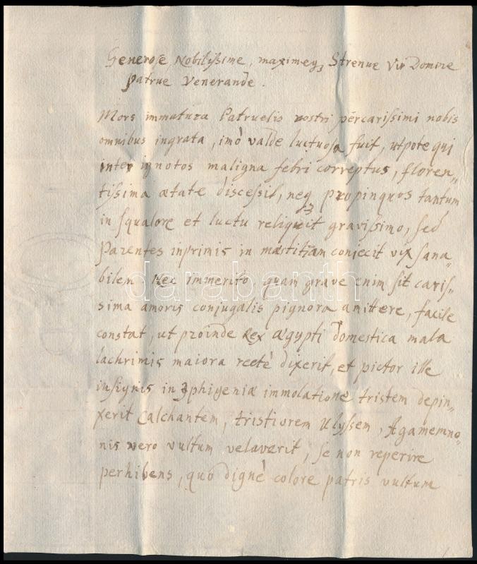 1672 Letter of Johann Melchior von Oeynhausen (1618-1675) about death in Latin language, with wax seal.
