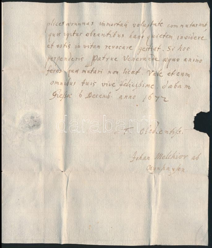 1672 Johann Melchior von Oeynhausen (1618-1675) halálozás tárgyában ír... https://www.darabanth.com/en/317-Online-auction/317.0/Other-collectibles/Historical-documents-manuscripts~21/1672-Johann-Melchior-von-Oeynhausen-1618-1675-halalozas-targyaban-irodott-latin-nyelvu-leve~II1748168