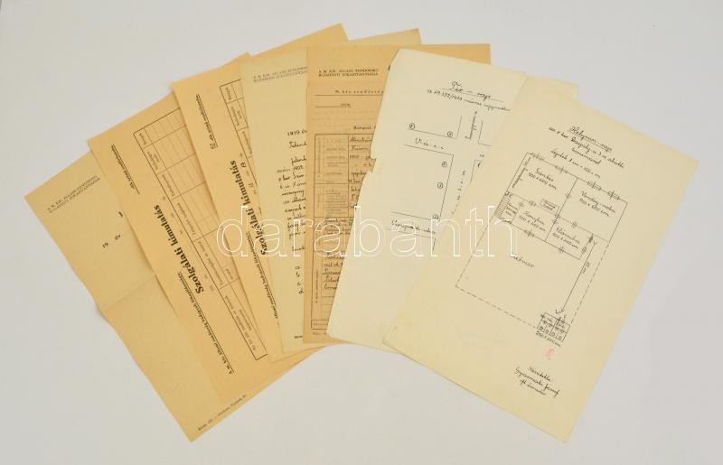 1939 9 db rendőrségi oktató(?) anyag: szolgálati kimutatás, helyszínrajz, jegyzőkönyv