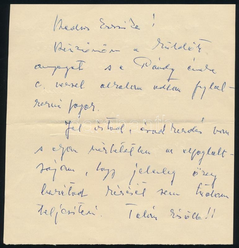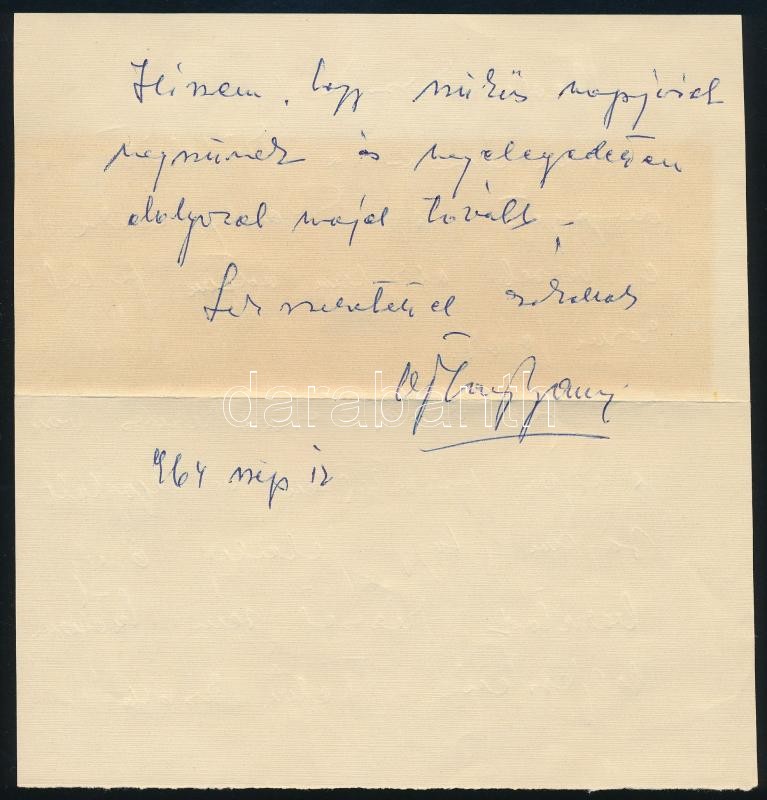 1964 Ajtay Andor színész, rendező kézzel írt levele Nagy Erzsébet művé...