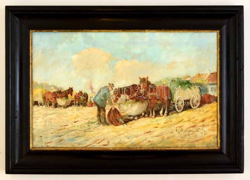 Gutaházy Németh Gyula (1892-1959): Érkezés a piacra. Olaj, vászon, jel...