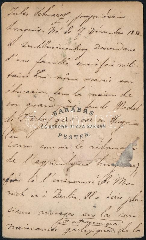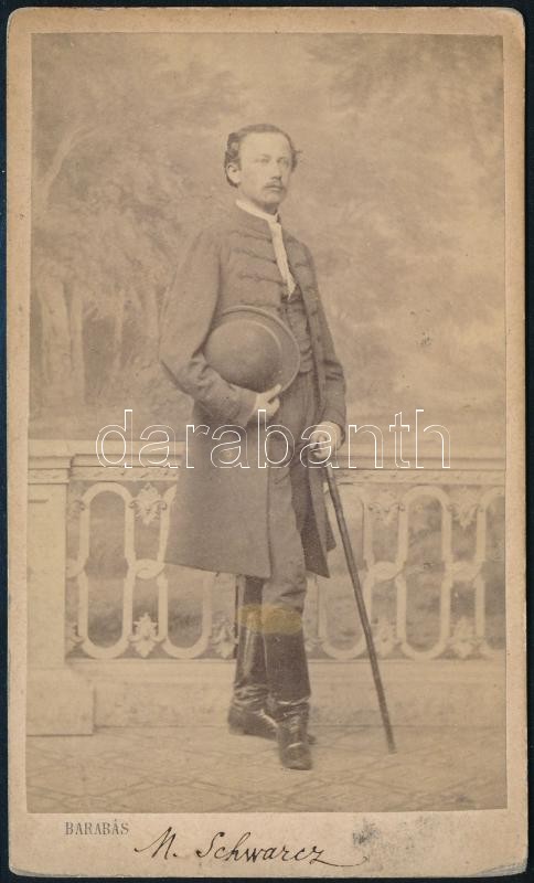 cca 1860 Schvarcz Gyula (1839-1900) történész, jogtörténész, művelődéspolitikus, egyetemi tanár, országgyűlési képviselő, MTA tagja, műtermi keményhátú fotója, Barabás (Pest) műterméből, 10,5x6 cm