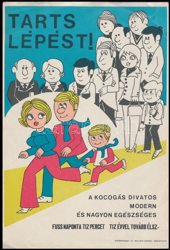 "Tarts lépést!", sportpropaganda villamosplakát, ofszet, papír, kis sz...
