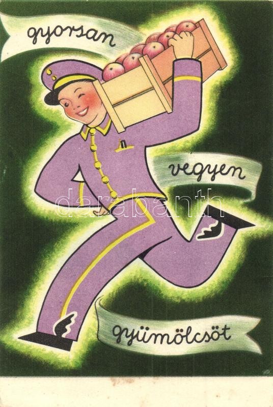 Gyorsan vegyen gyümölcsöt, C-vitamin táblázat a hátoldalon, kiadja Hor...