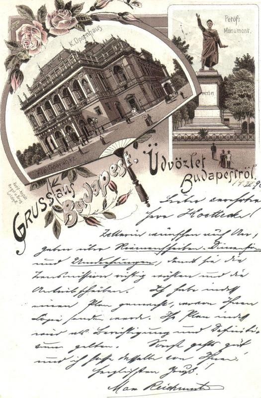 1896 Budapest, Operaház, Petőfi szobor. Floral, Art Nouveau, litho (vá...