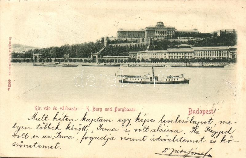 1899 Budapest I. Királyi vár és várbazár, gőzhajó (EK)
