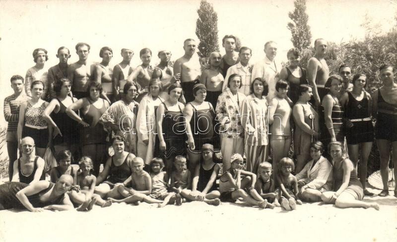 1929 Balatonlelle, Drogista nyaralók fürdőruhás csoportképe. photo (EK)