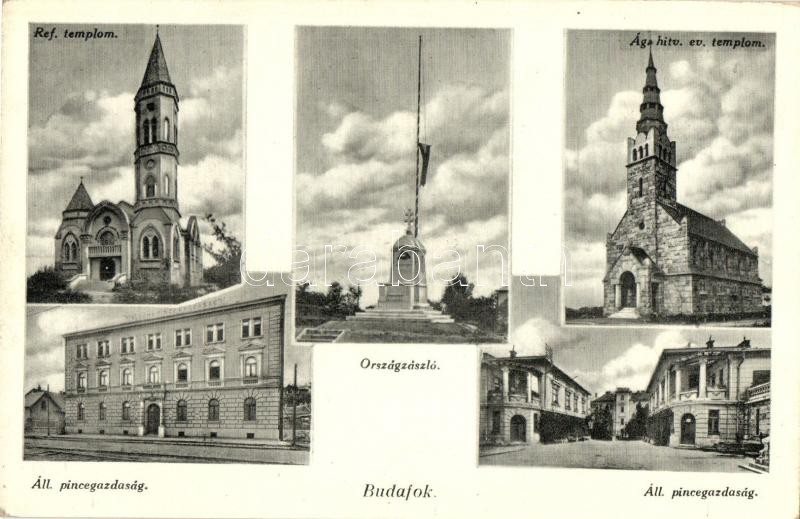 Budapest XXII. Budafok, országzászló, állami pincegazdaság, református és ágostai hitvallású evangélikus templom
