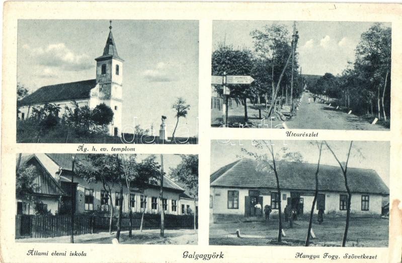 Galgagyörk, Ágostai hitvallású Evangélikus templom, utca, állami elemi iskola, hangya fogyasztási szövetkezet (fl)