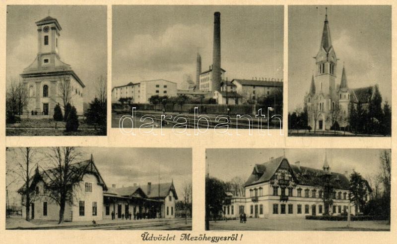 Mezőhegyes, Cukorgyár, Központi szálloda, Vasútállomás, templomok (EK)
