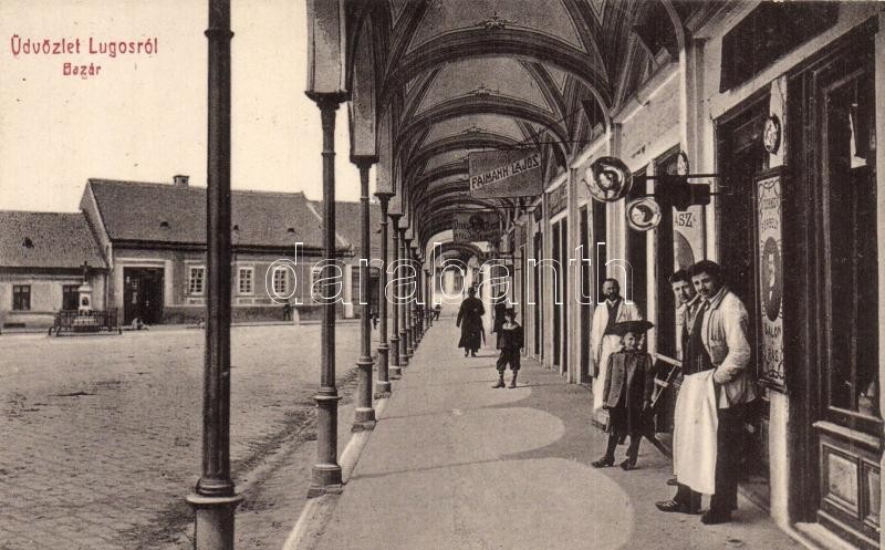 Lugos, Lugoj; Bazár sor, fodrász és borbély szalon, Faimann Lajos üzlete, divatterem. W.L. 156. / bazaars, hairdresser and barber, shops