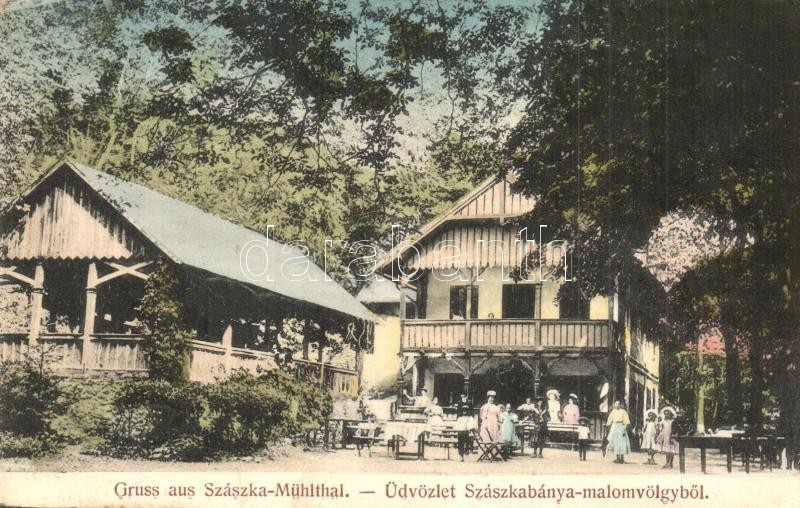 Szászkabánya, Sasca Montana, Mühlthal; Malom-völgy, étterem. Franz Krisch kiadása / valley restaurant (EK)