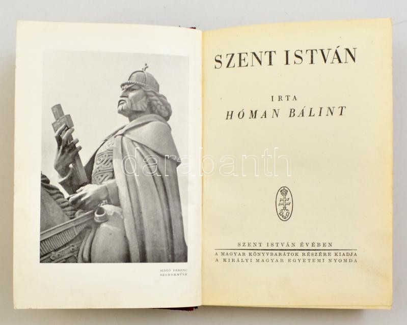 Hóman Bálint: Szent István. Bp.,(1938), Kir. Magyar Egyetemi Nyomda. K... https://www.darabanth.com/en/318-Online-auction/318.0/Books/Books-History~1500004/Homan-Balint-Szent-Istvan-Bp-1938-Kir-Magyar-Egyetemi-Nyomda-Kiadoi-egeszvaszon-kote~II1751987