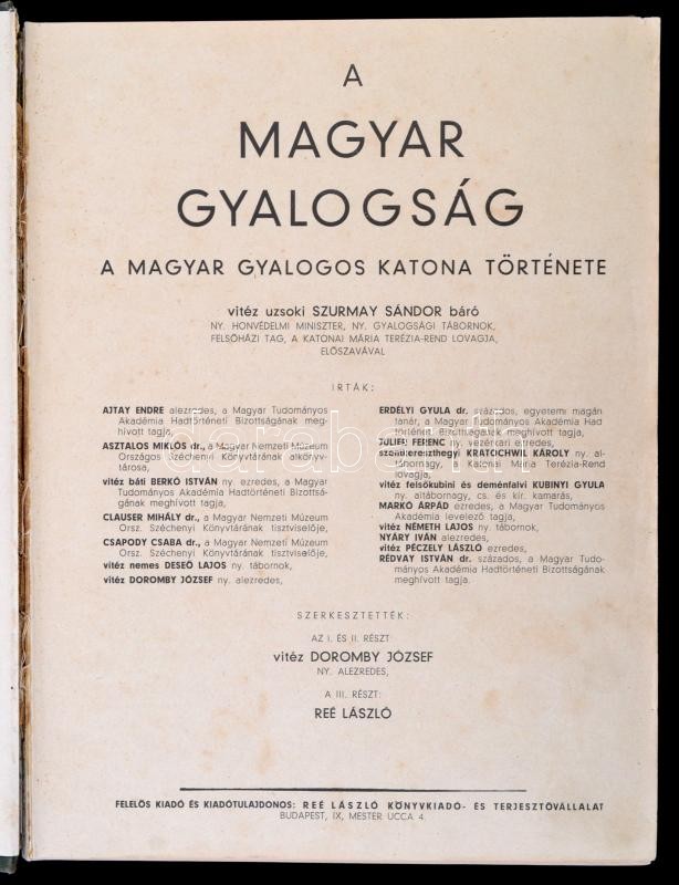 Description: A magyar gyalogság. A magyar gyalogos katona története. Szerk.: Doromby József. Bp., [1941], Reé László. Kicsit kopott vászonkötésben, gerincénél szakadások.