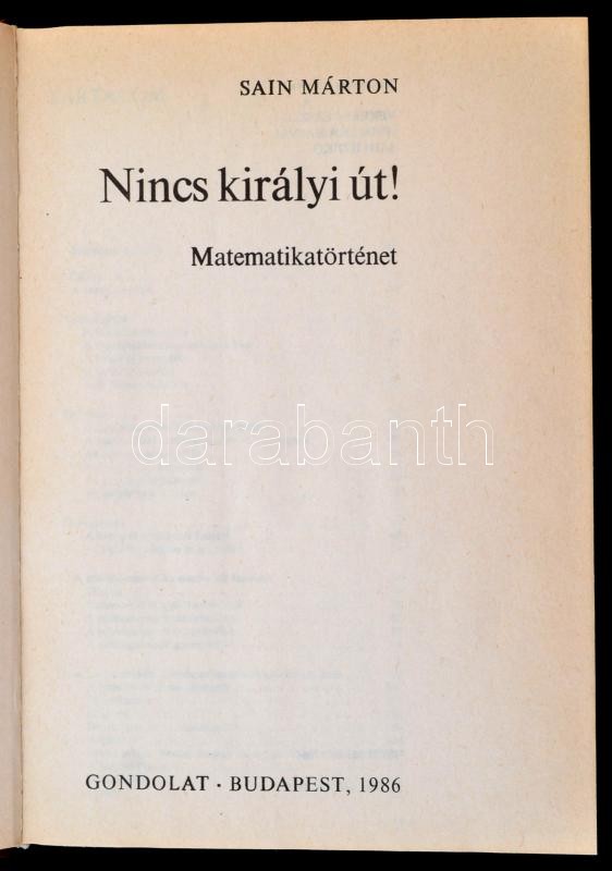 Sain Márton: Nincs királyi út! Matematikatörténet. Bp., 1986, Gondolat. Kiadói egészvászon kötés, papír védőborítóval, képekkel illusztrált, jó állapotban.
