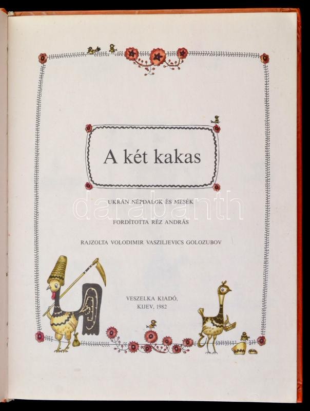 A két kakas. Ukrán népdalok és mesék. Fordította Réz András. Rajzolta:... https://www.darabanth.com/en/318-Online-auction/318.0/Books/Books-Other-rarities~1500016/A-ket-kakas-Ukran-nepdalok-es-mesek-Forditotta-Rez-Andras-Rajzolta-Volodimir-Vasziljevic~II1692067
