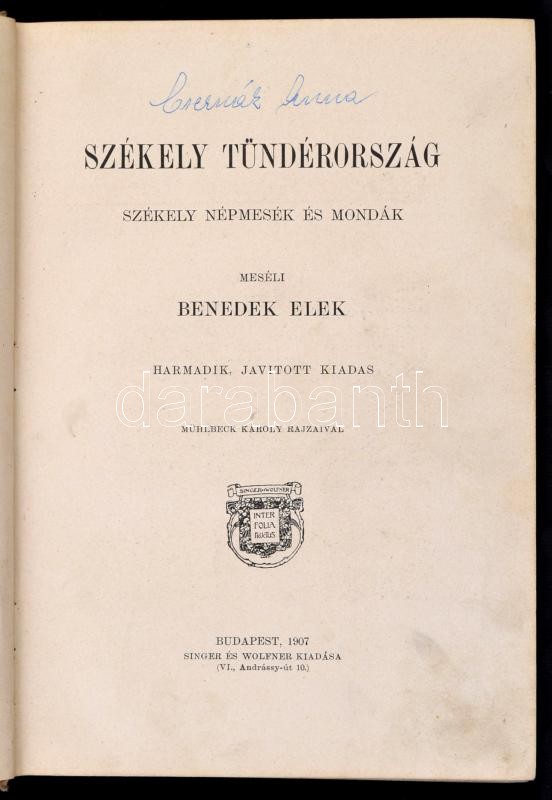 Benedek Elek: Székely tündérország. Székely népmesék és mondák. Mühlbe... https://www.darabanth.com/en/318-Online-auction/318.0/Books/Books-Other-rarities~1500016/Benedek-Elek-Szekely-tunderorszag-Szekely-nepmesek-es-mondak-Muhlbeck-Karoly-rajzaival~II1758009