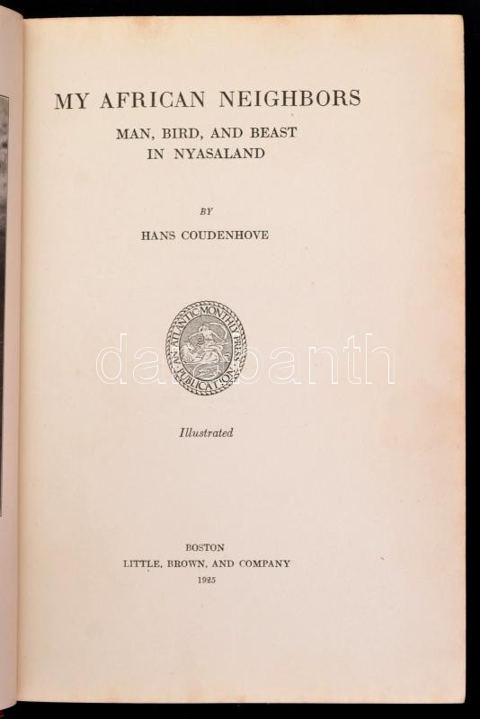 Hans Coudenhove: My African neighbors. Man, bird, and beast in Nyasaland. Boston, 1925, Little, Brown, and Company. Angol nyelven, kaidói egészvászon kötésben, kissé kopott hátsó borítóval. / In English, linen binding, slightly worn back cover.