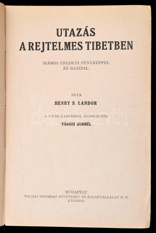 Henry S. Landor: Utazás a rejtelmes Tibetben. Átdolgozta Tábori Kornél... https://www.darabanth.com/en/318-Online-auction/318.0/Books/Books-Travelling-Local-History~1500001/Henry-S-Landor-Utazas-a-rejtelmes-Tibetben-Atdolgozta-Tabori-Kornel-Budapest-en-Tolnai-~II1655906