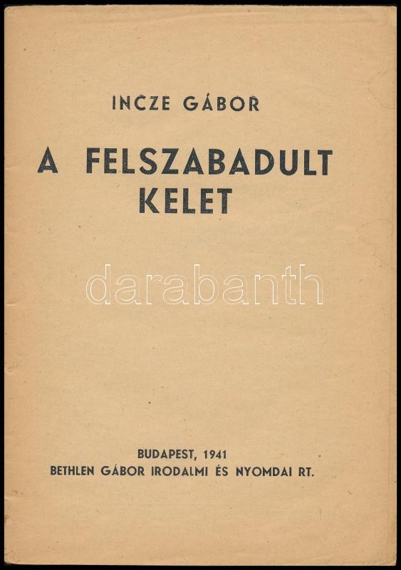 https://www.darabanth.com/en/318-Online-auction/318.0/Books/Books-Travelling-Local-History~1500001/Incze-Gabor-A-felszabadult-kelet-Bp-1941-Bethlen-Gabor-Irodalmi-es-Nyomdai-Rt-Serult-tu~II1748518