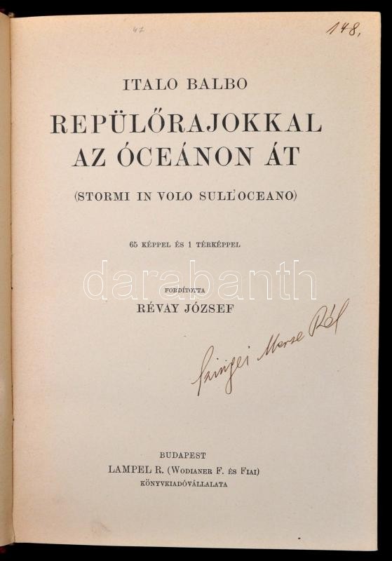 Italo Balbo: Repülőrajokkal az óceánon át. A Magyar Földrajzi Társaság... https://www.darabanth.com/en/318-Online-auction/318.0/Books/Books-Travelling-Local-History~1500001/Italo-Balbo-Repulorajokkal-az-oceanon-at-A-Magyar-Foldrajzi-Tarsasag-Konyvtara-Fordito~II1732202