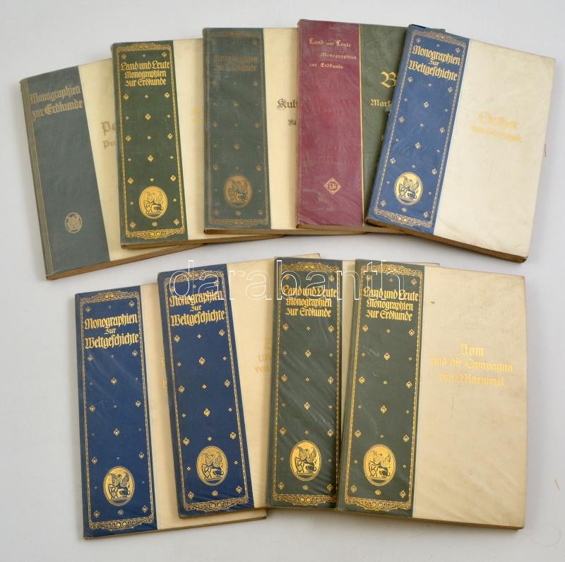 Description: Monographien zur Erdkunde c. helytörténeti, utazási képes könyvsorozat (BIelefeld, cca 1927, Leipzig) 9 db kötete jó állapotban, nyl védőborítókkal Palesztínától Rómáig.