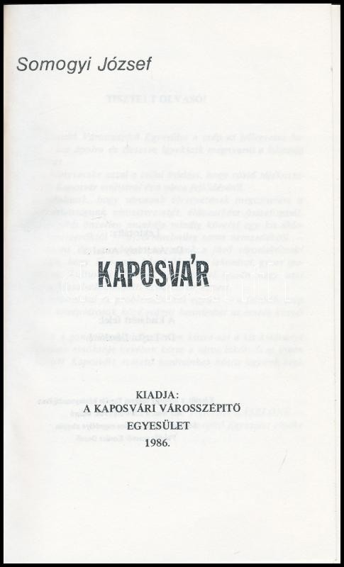 Somogyi József: Kaposvár. Kaposvár, 1986, Kaposvári Városszépítő Egyes...