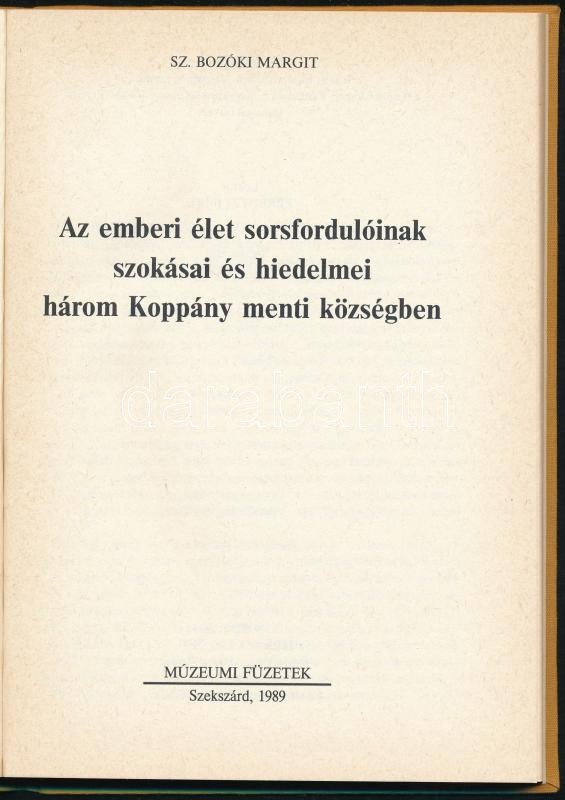 Sz. Bozóki Margirt: Az emberi élet sorsfordulóinak szokásai és hiedelm... https://www.darabanth.com/en/318-Online-auction/318.0/Books/Books-Travelling-Local-History~1500001/Sz-Bozoki-Margirt-Az-emberi-elet-sorsforduloinak-szokasai-es-hiedelmei-harom-Koppany-menti-~II1754087