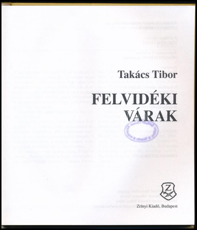 Takács Tibor: Felvidéki várak. Bp, 1999, Zrínyi. Fekete-fehér illusztrációkkal. Kiadói kartonált papírkötés, hullámos lapokkal, intézményi bélyegzővel.
