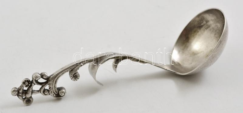 Ezüst (Ag.) díszes kisméretű merőkanál, poncolt monogrammal, jelzett (...