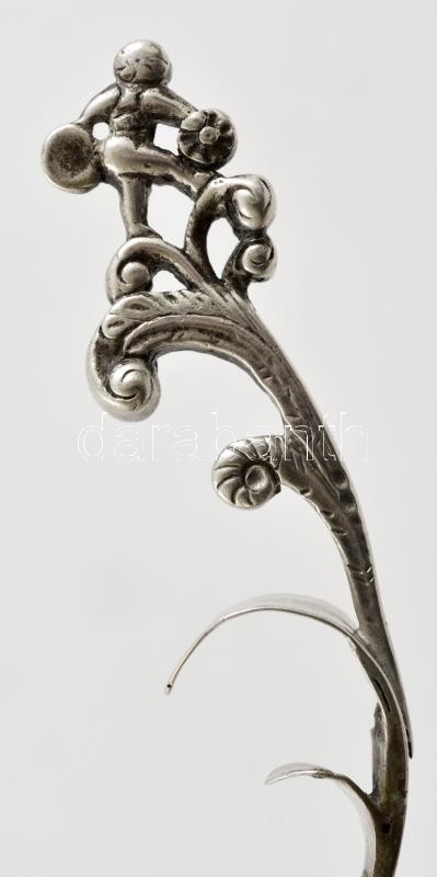 Ezüst (Ag.) díszes kisméretű merőkanál, poncolt monogrammal, jelzett (CM), forrasztott, h: 13,5 cm, nettó 30,3 g