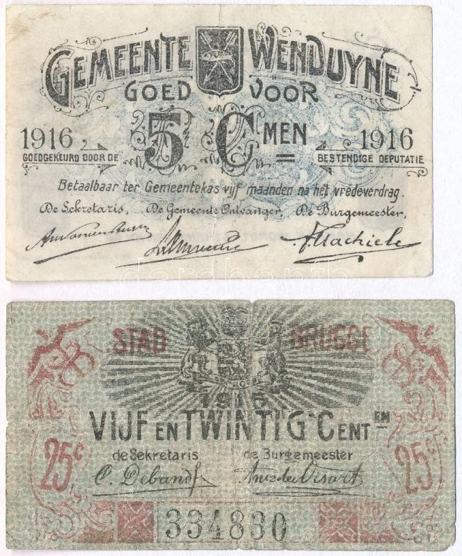 Belgium / Brugge 1915(?) 25c + Wenduyne 1916. 5c szükségpénzek T:III-