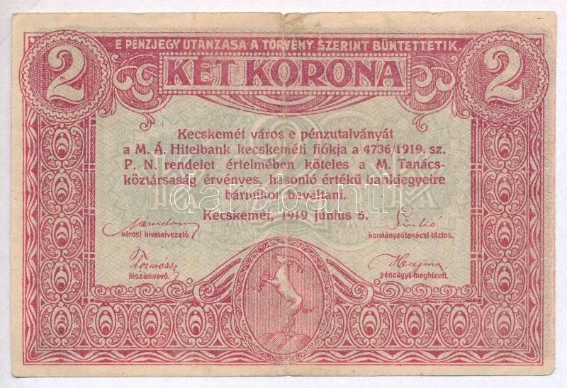 Kecskemét 1919.06.05. 2K pénzutalvány T:III,III-