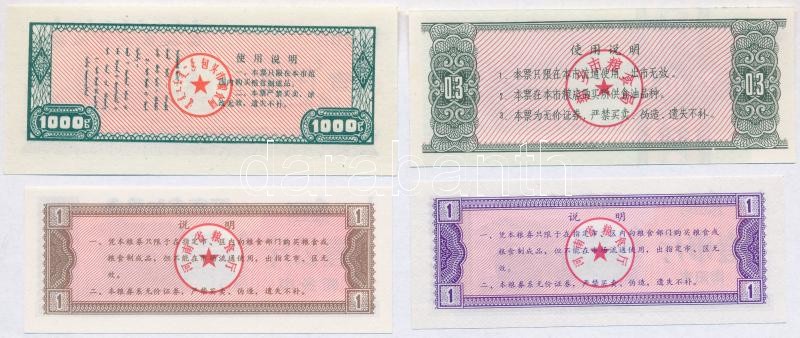 Kína ~1980-1990. 4db klf rizsjegy(?) T:I,I-
