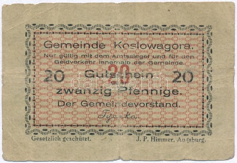 Description: Német Birodalom / Weimari Köztársaság / Koslowagora ~1918. 20pf szükségpénz, hátoldalán bélyegzés T:III-,IV