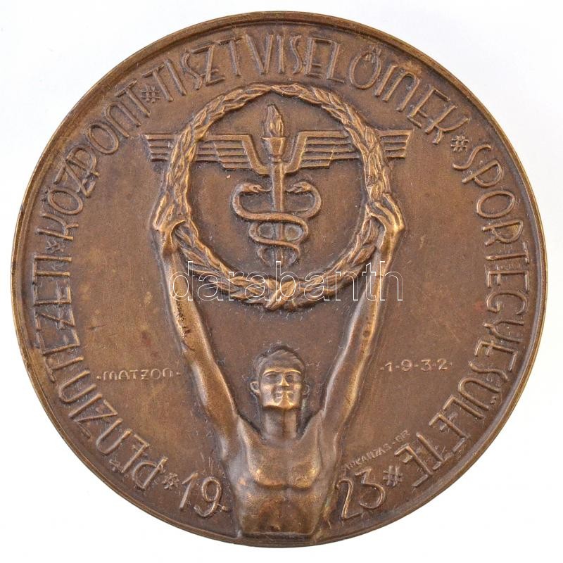 Matzon Frigyes (1909-1986) 1932. "Pénzintézeti Központ Tisztviselőinek Sportegyesülete 1923 / 1933. VIII. 29. III. hely" Br díjérem "Arkansas BP." gyártói jelzéssel (50mm) T:2