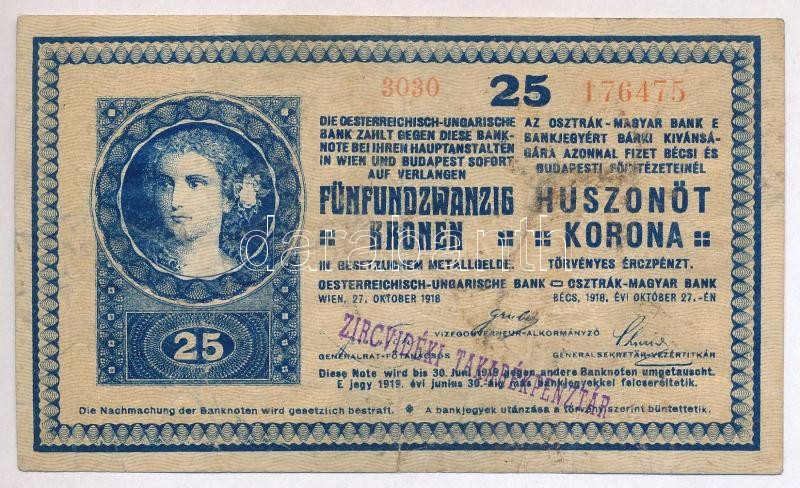https://www.darabanth.com/en/318-Online-auction/318.0/Numismatics/Hungarian-Banknotes~1000006/1918-25K-3030-3mm-sima-hatlap-hamis-Zircvideki-Takarekpenztar-felulbelyegzessel-fake~II1750289