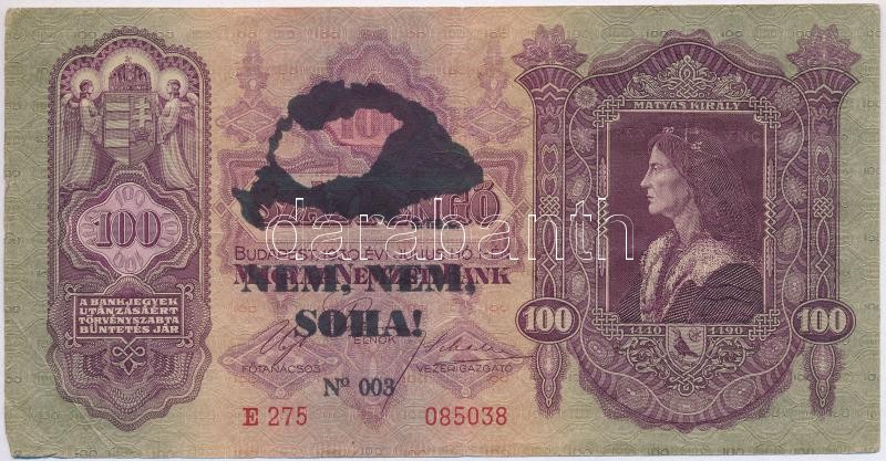 1930. 100P hamis "NEM, NEM, SOHA!" felülbélyegzéssel (fake o...