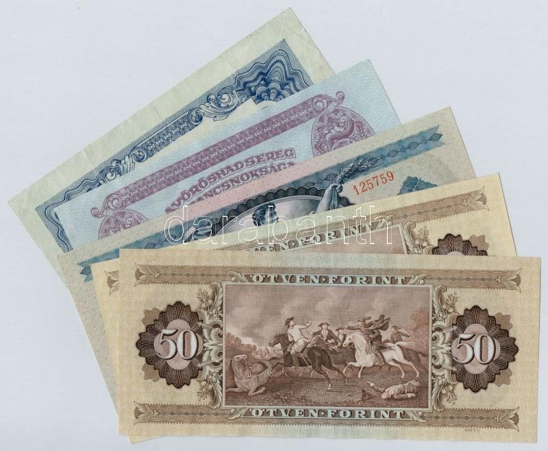 1944. 2P + 5P "A Vöröshadsereg Parancsnoksága" + 1969. 20Ft + 1975-1989. 50Ft (2x) T:III