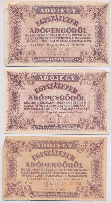 1946. 100.000AP (5x) közte 2db sorozat- és sorszám nélkül T:III