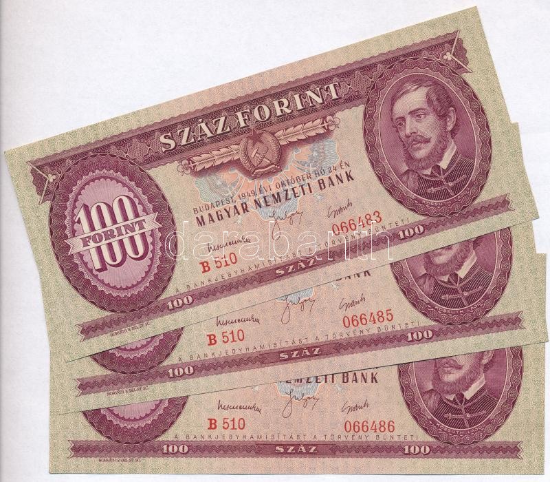 1949. 100Ft (3x) közte 2db sorszámkövető és 1db közeli sorszám T:I-,II