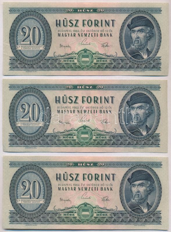 https://www.darabanth.com/en/318-Online-auction/318.0/Numismatics/Hungarian-Banknotes~1000006/1962-20Ft-3x-sorszamkovetok-TII~II1755906